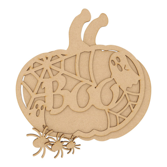 3D Wooden Halloween Pumpkin – Layered Boo Decoration
