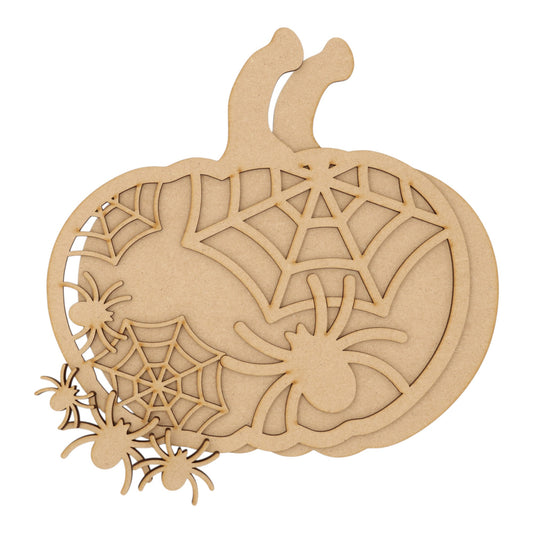 3D Wooden Halloween Spider Web Pumpkin – Layered Decoration