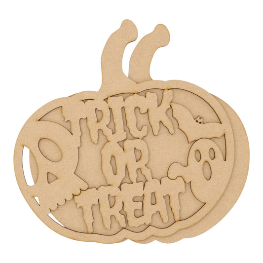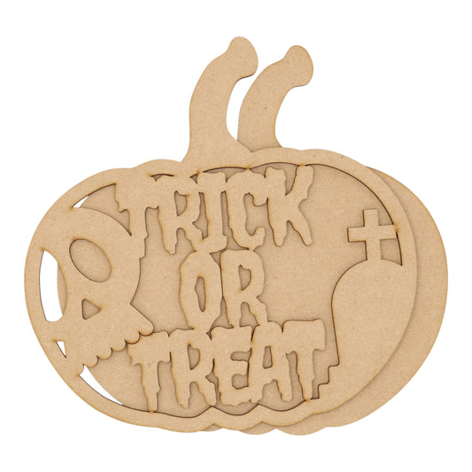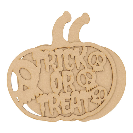 3D Wooden Halloween Pumpkin – Layered Trick or Treat & Skull Decoration