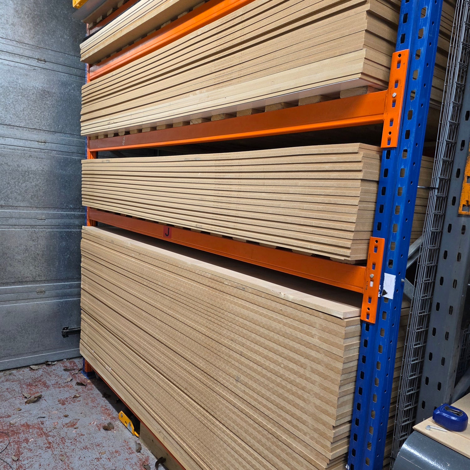 We keep a significant volume of premium MDF in stock at all times, allowing us to move straight into production without waiting on material deliveries. Our rack is always stocked with various thicknesses to suit everything from thin decorative overlays to heavy-duty structural parts.