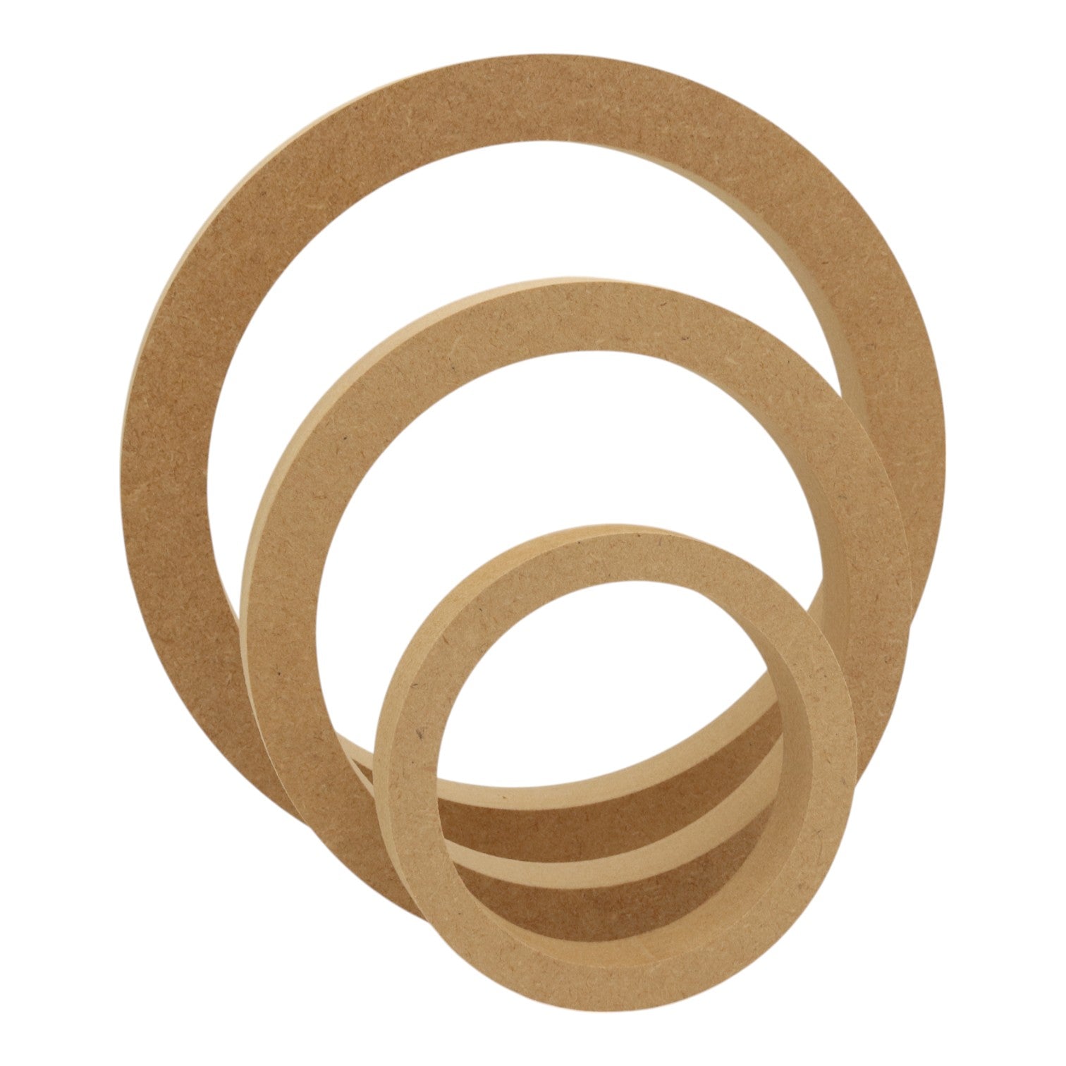 Elevate your crafting projects with our CNC routed hollow circle / hoop shape, crafted from high-quality 18mm MDF. These wooden craft shapes are supplied in a smooth, sanded, bare state, ready for your arts and crafts projects. Each wooden blank can be decorated with a wide range of products, including paints, inks, and glitters. Perfect for bringing your creative visions to life, these MDF craft shapes are essential for any DIY enthusiast.