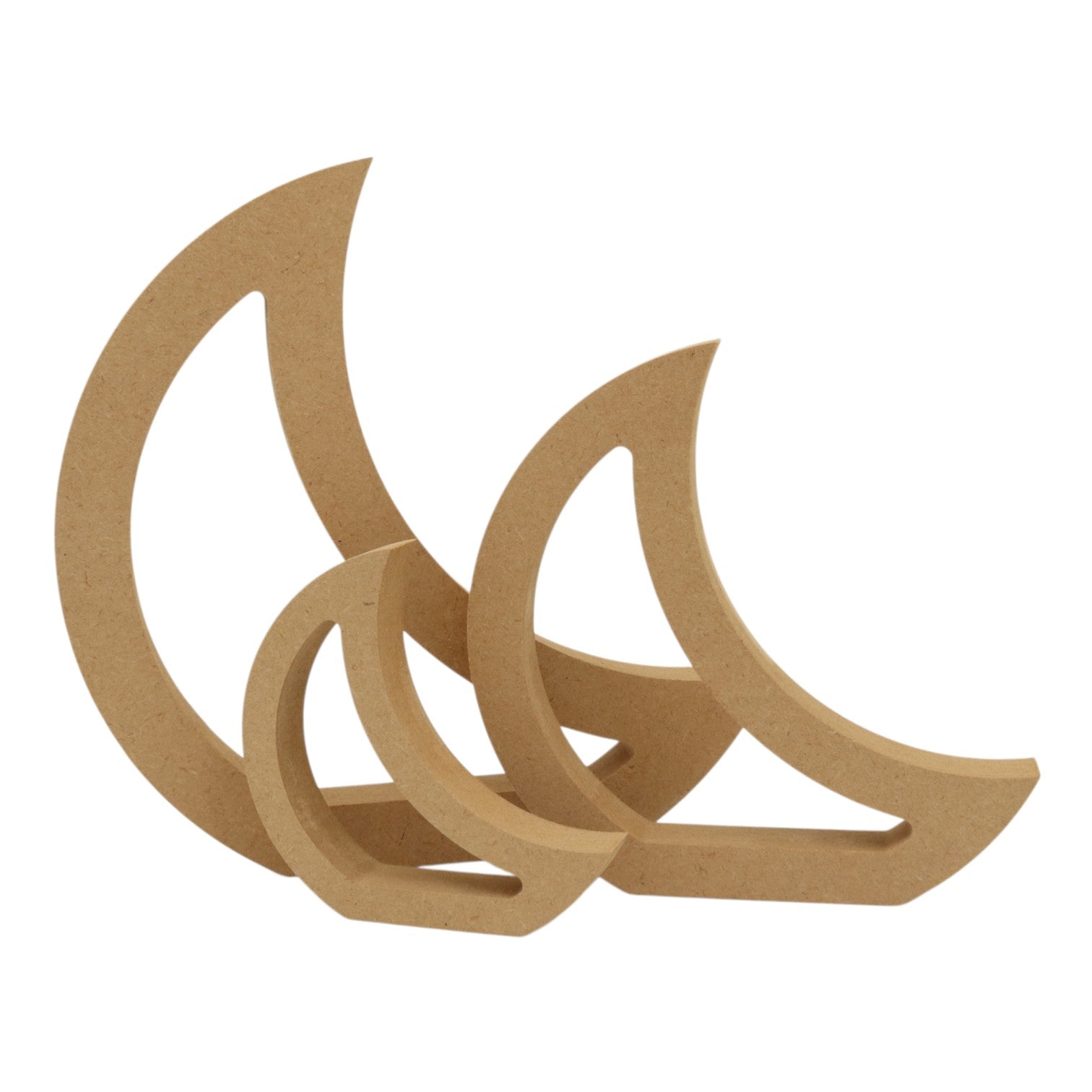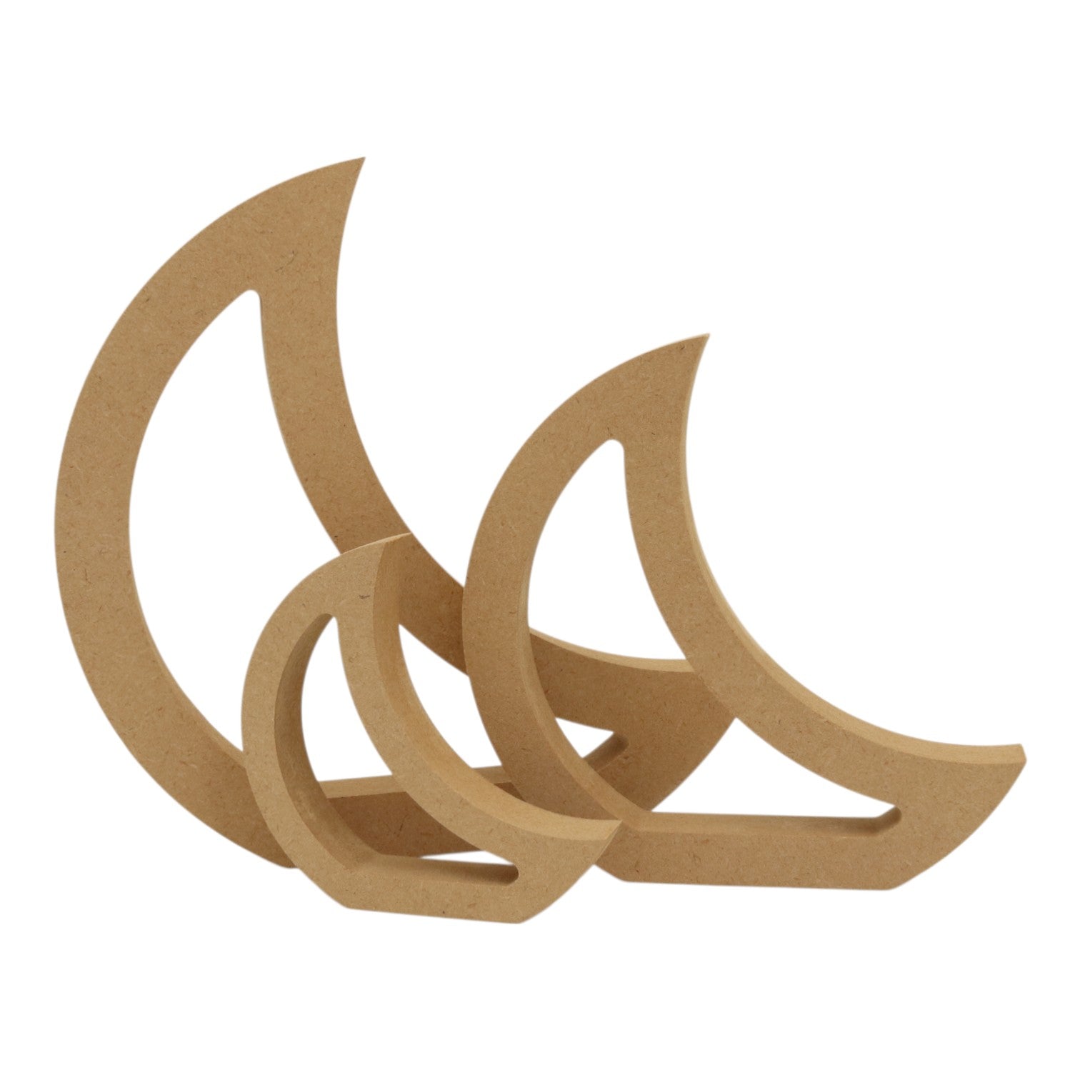 Elevate your crafting projects with our CNC routed freestanding hollow crescent moon shape, crafted from high-quality 18mm MDF. These wooden craft shapes are supplied in a smooth, sanded, bare state, ready for your arts and crafts projects. Each wooden blank can be decorated with a wide range of products, including paints, inks, and glitters. Perfect for bringing your creative visions to life, these MDF craft shapes are essential for any DIY enthusiast.
