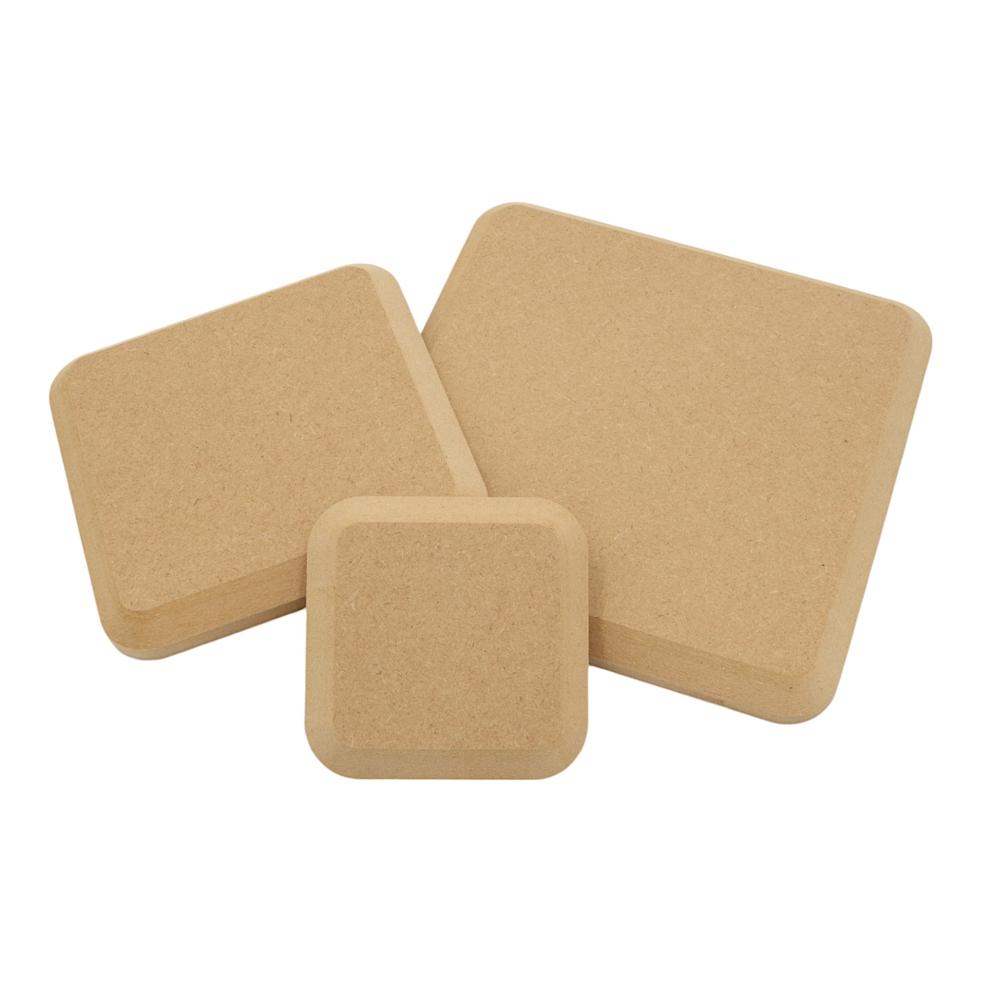 Elevate your crafting projects with our CNC routed squares with rounded corners and a chamfered top edge. Crafted from high-quality 18mm MDF. These wooden craft shapes are supplied in a smooth, sanded, bare state, ready for your arts and crafts projects. Each wooden blank can be decorated with a wide range of products, including paints, inks, and glitters. Perfect for bringing your creative visions to life, these MDF craft shapes are essential for any DIY enthusiast.