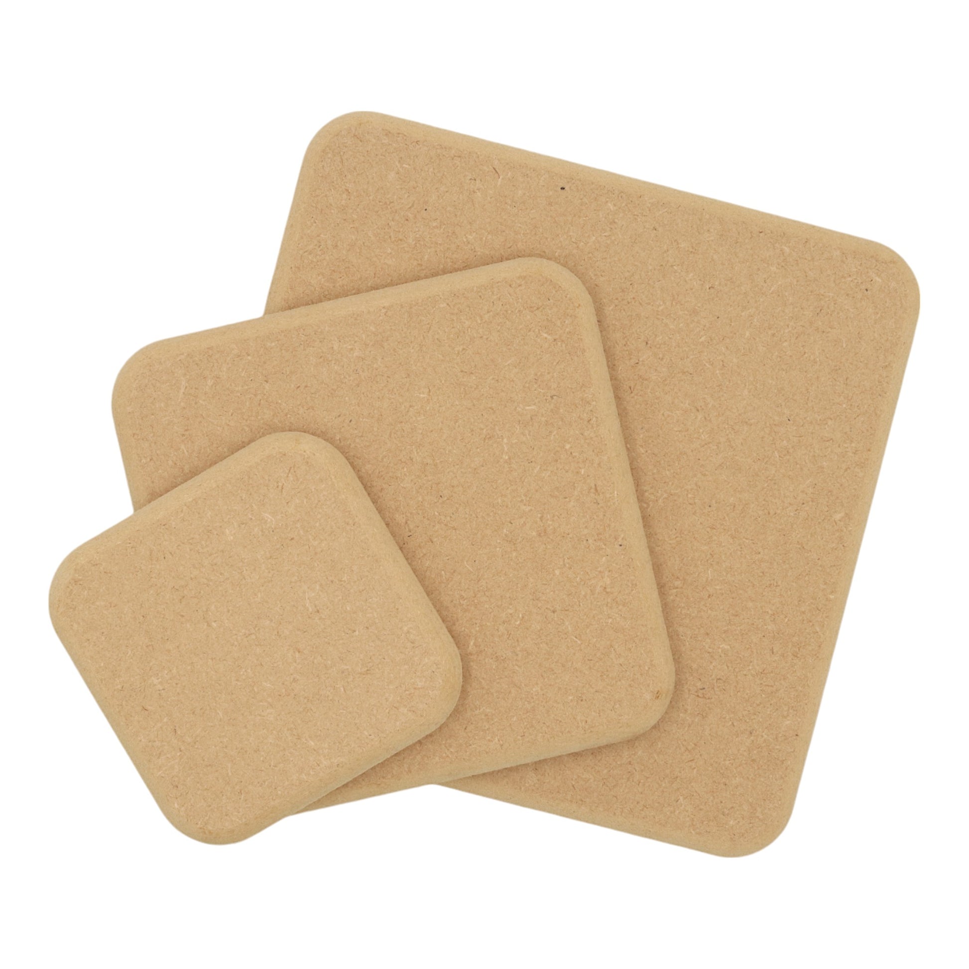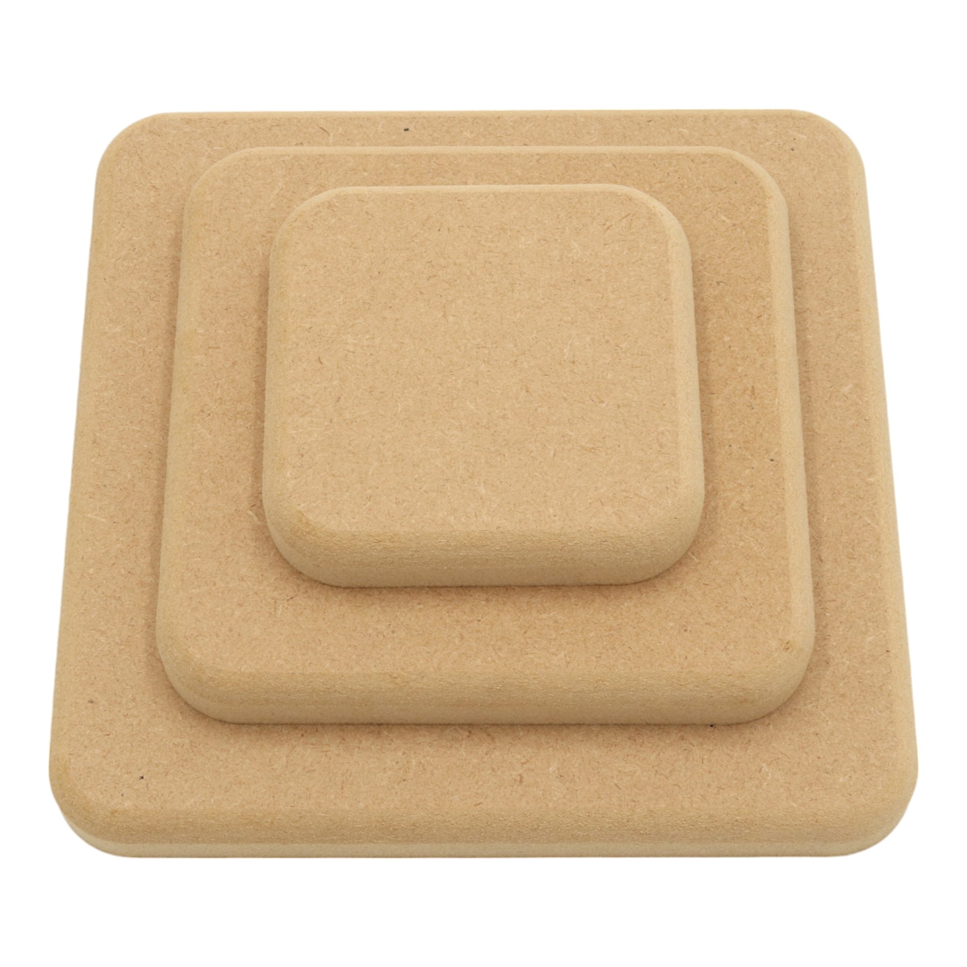 Elevate your crafting projects with our CNC routed squares with rounded corners and a rounded top edge. Crafted from high-quality, 12mm or 18mm MDF. These wooden craft shapes are supplied in a smooth, sanded, bare state, ready for your arts and crafts projects. Each wooden blank can be decorated with a wide range of products, including paints, inks, and glitters. Perfect for bringing your creative visions to life, these MDF craft shapes are essential for any DIY enthusiast.