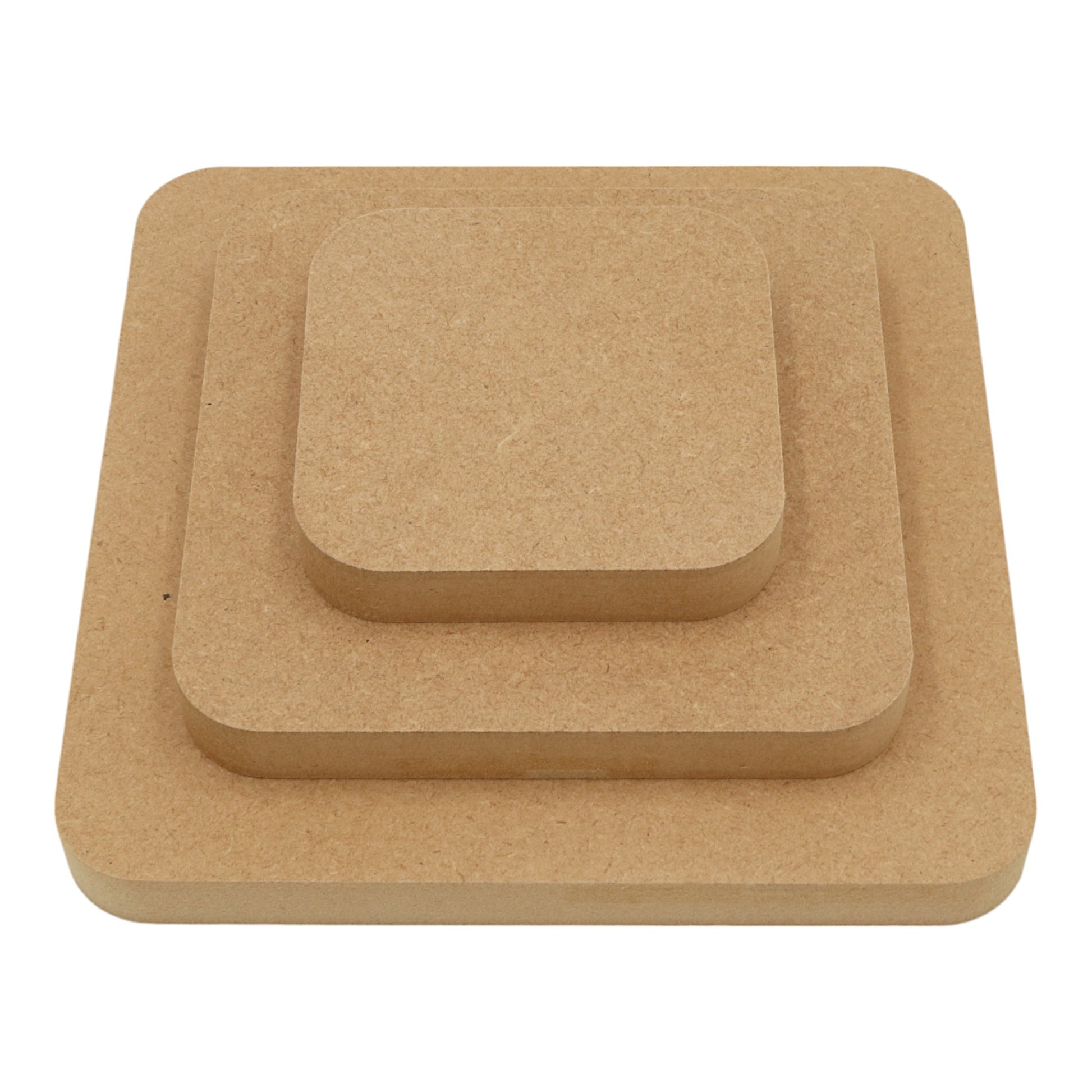 Elevate your crafting projects with our CNC routed squares with rounded corners. Crafted from high-quality 6mm, 12mm or 18mm MDF. These wooden craft shapes are supplied in a smooth, sanded, bare state, ready for your arts and crafts projects. Each wooden blank can be decorated with a wide range of products, including paints, inks, and glitters. Perfect for bringing your creative visions to life, these MDF craft shapes are essential for any DIY enthusiast.